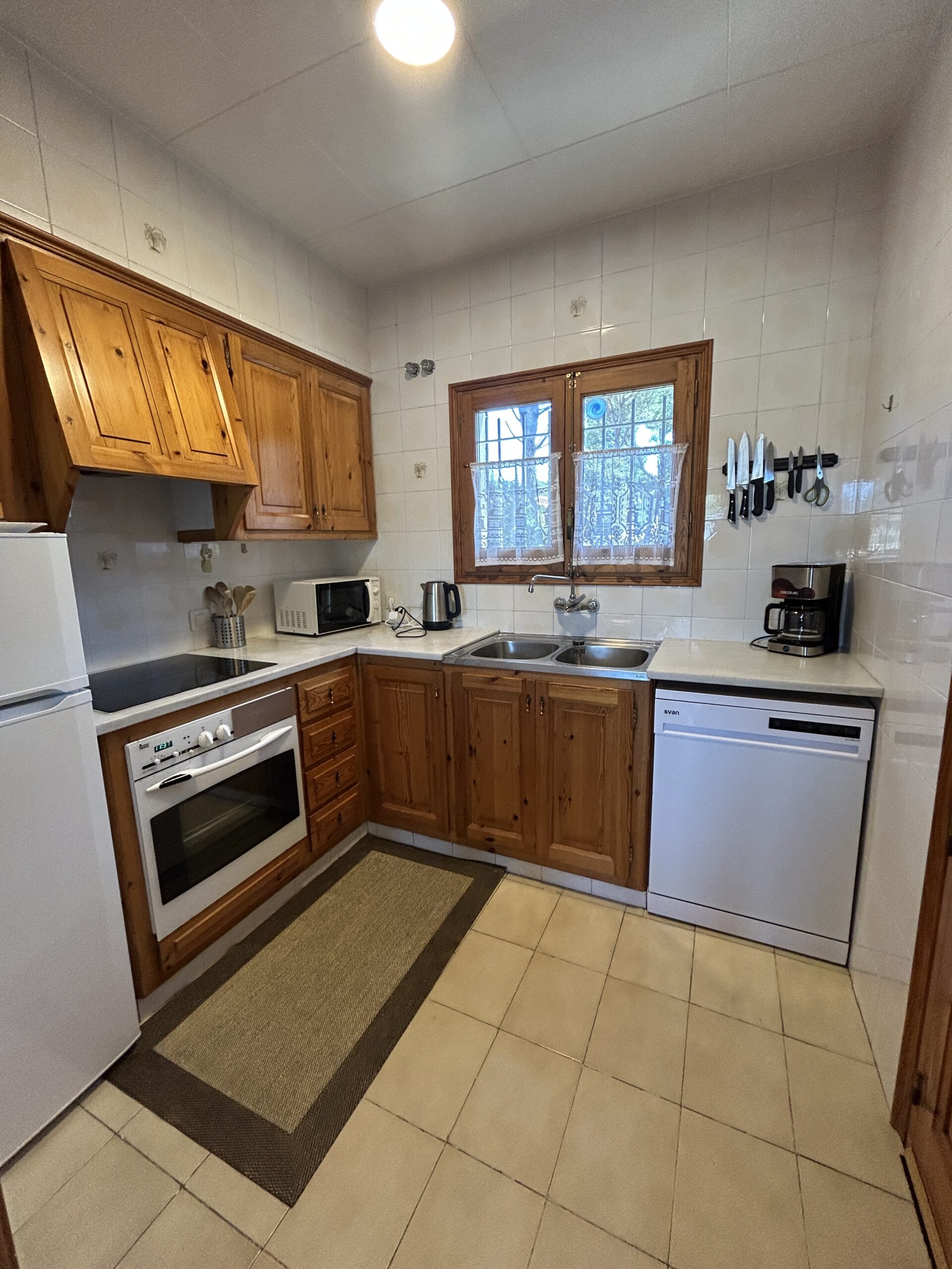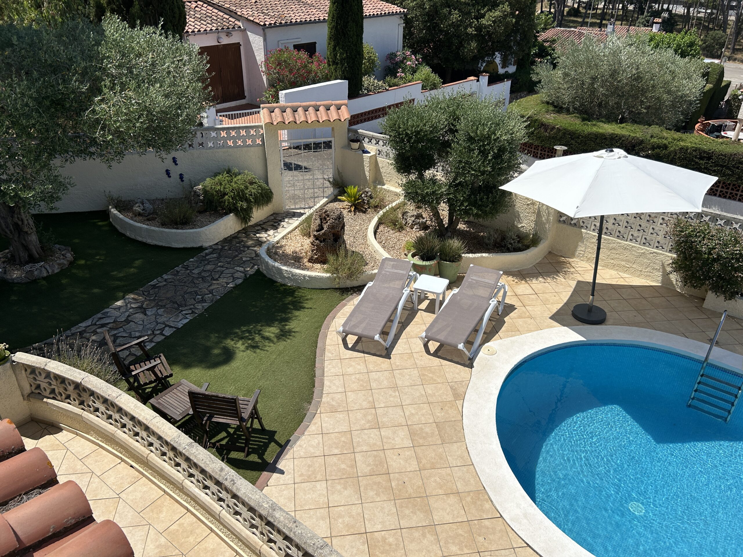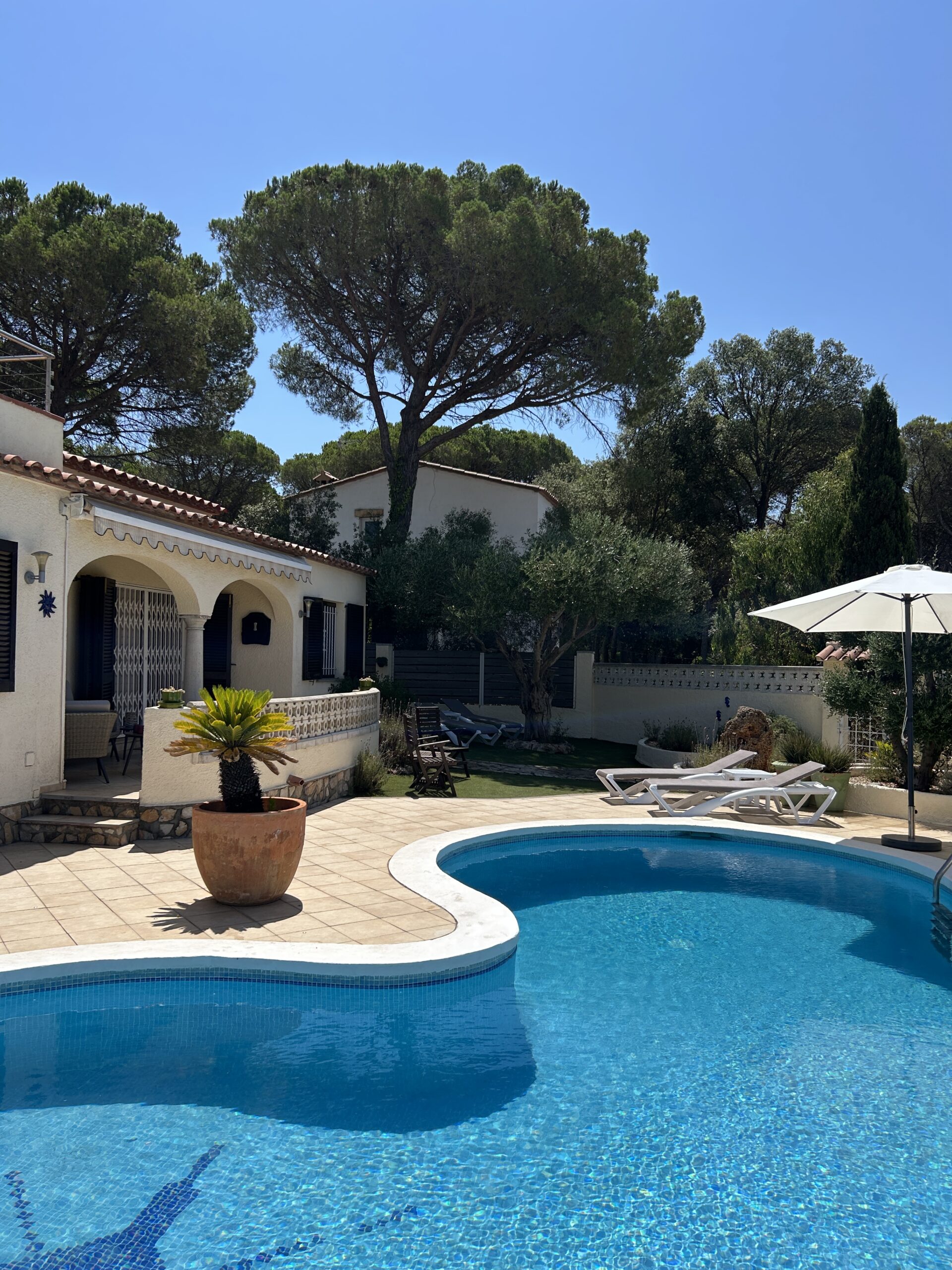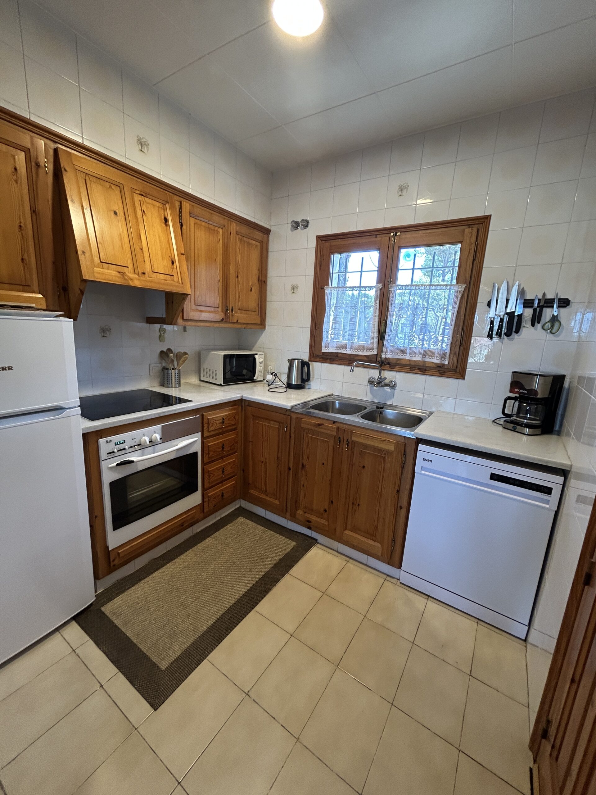 The cozy holiday home is located in a quiet residential area in Puig Sec, right on the edge of the forest. The house is on a 510 square meter, fully walled lot. The beautiful beach in Riells is around 1,200m from the house and many shops are within walking distance.