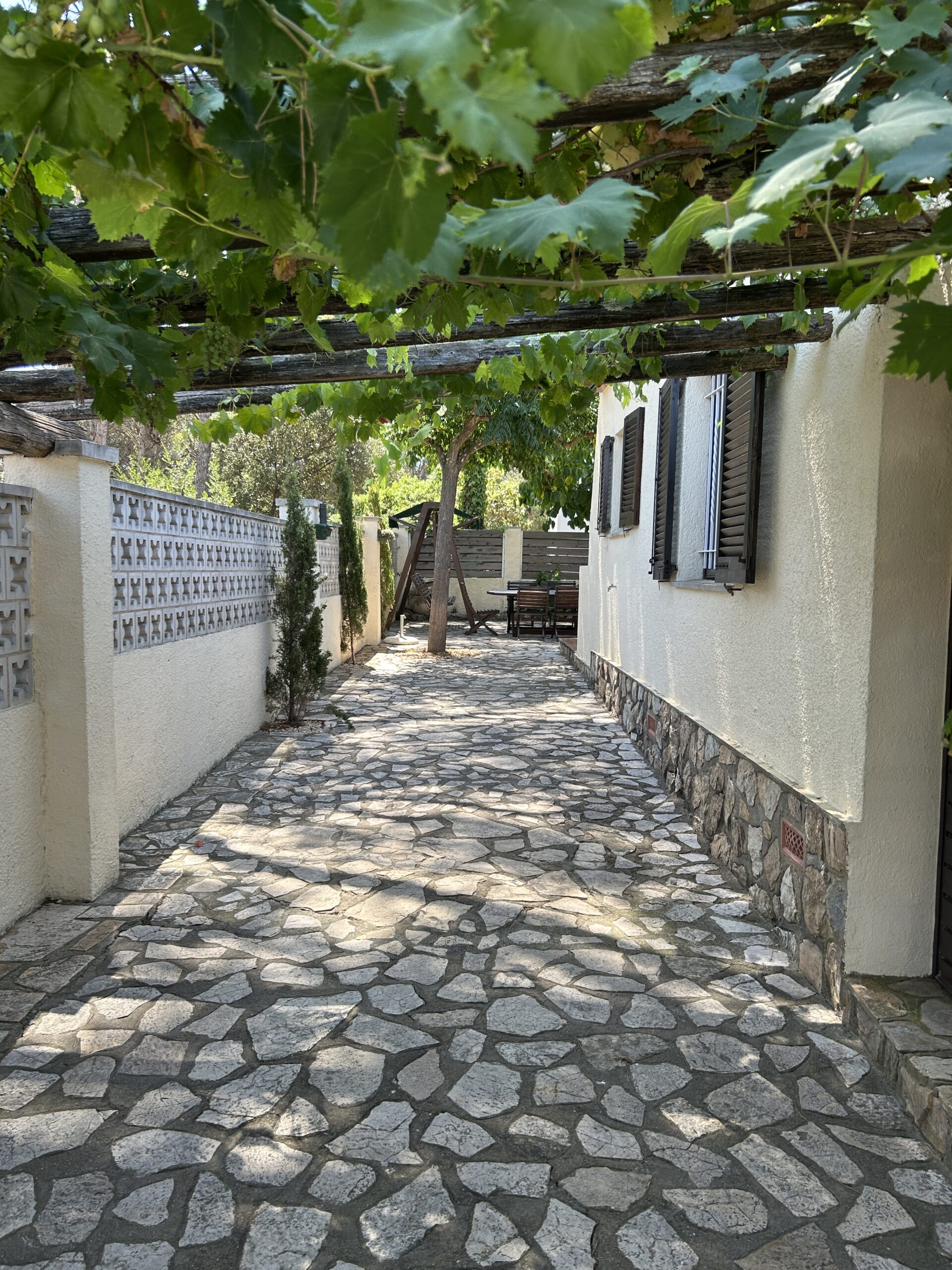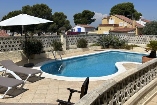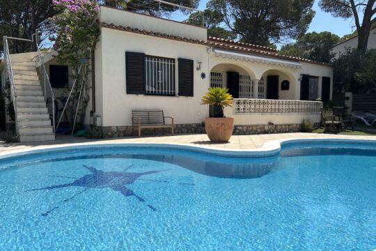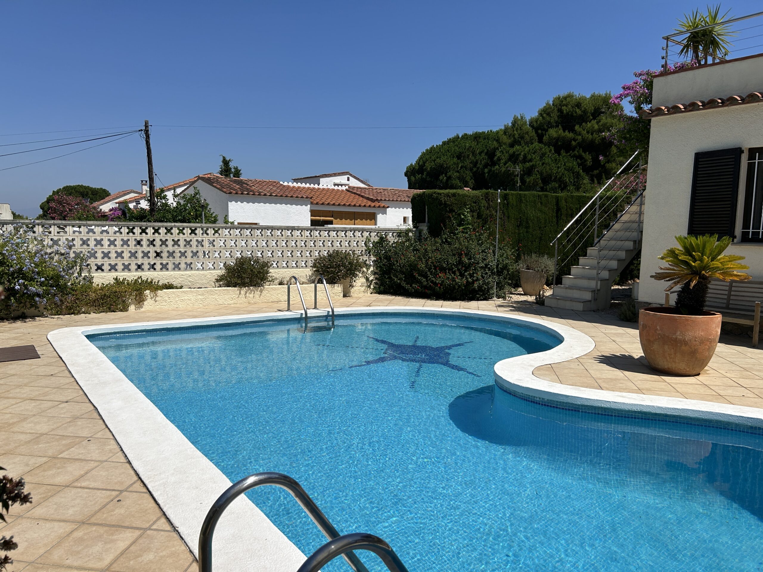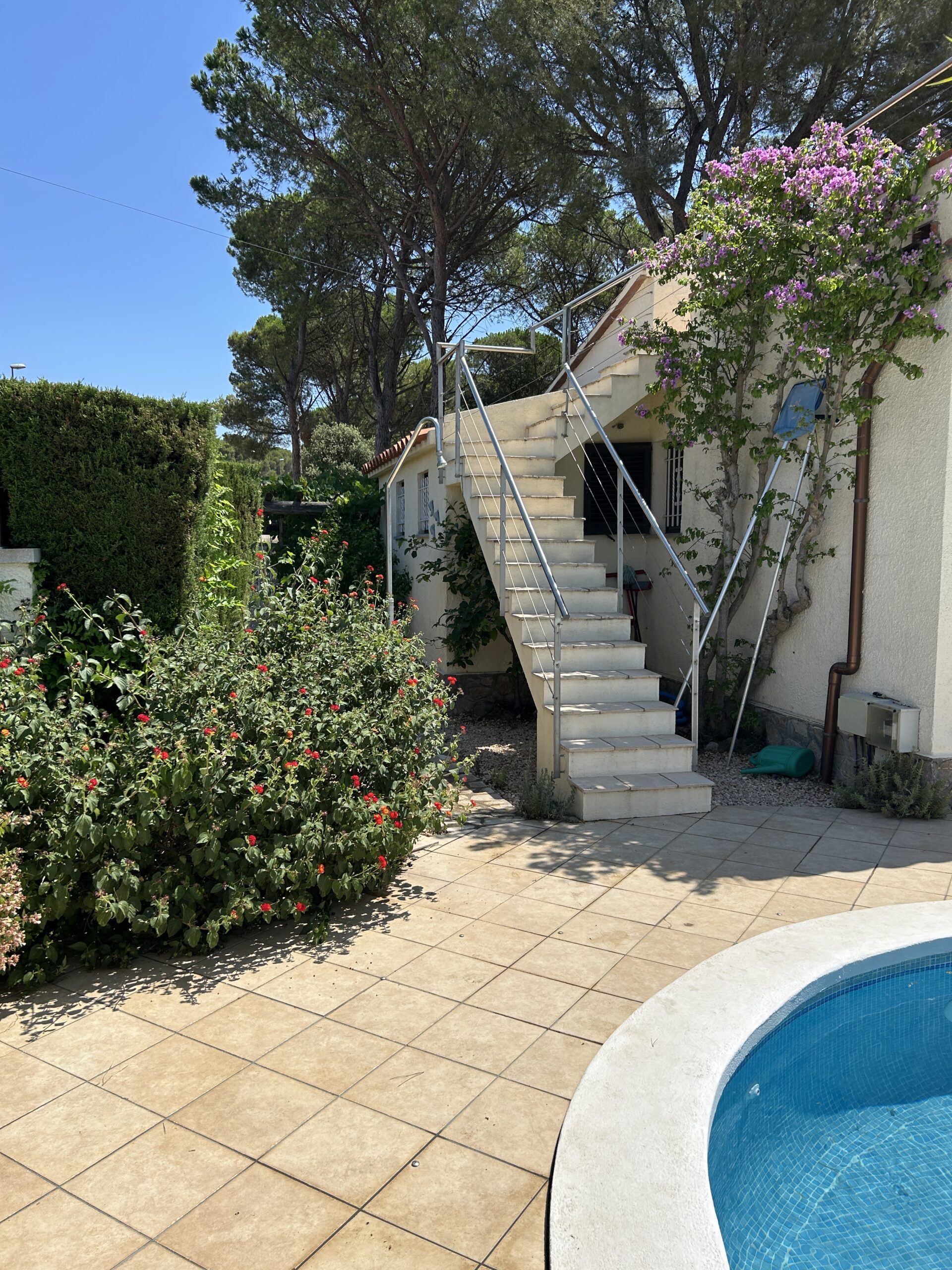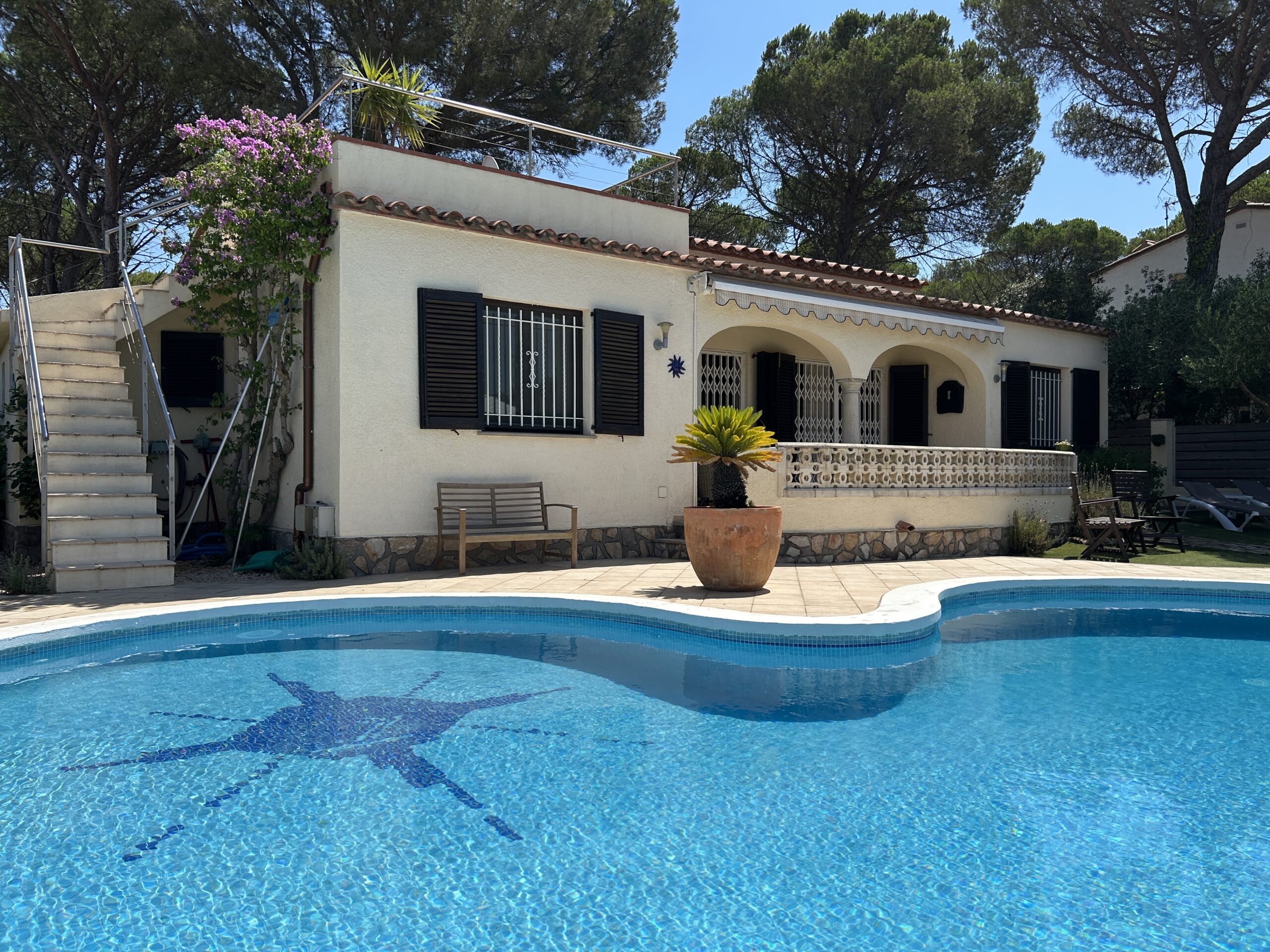 The cozy holiday home is located in a quiet residential area in Puig Sec, right on the edge of the forest. The house is on a 510 square meter, fully walled lot. The beautiful beach in Riells is around 1,200m from the house and many shops are within walking distance.