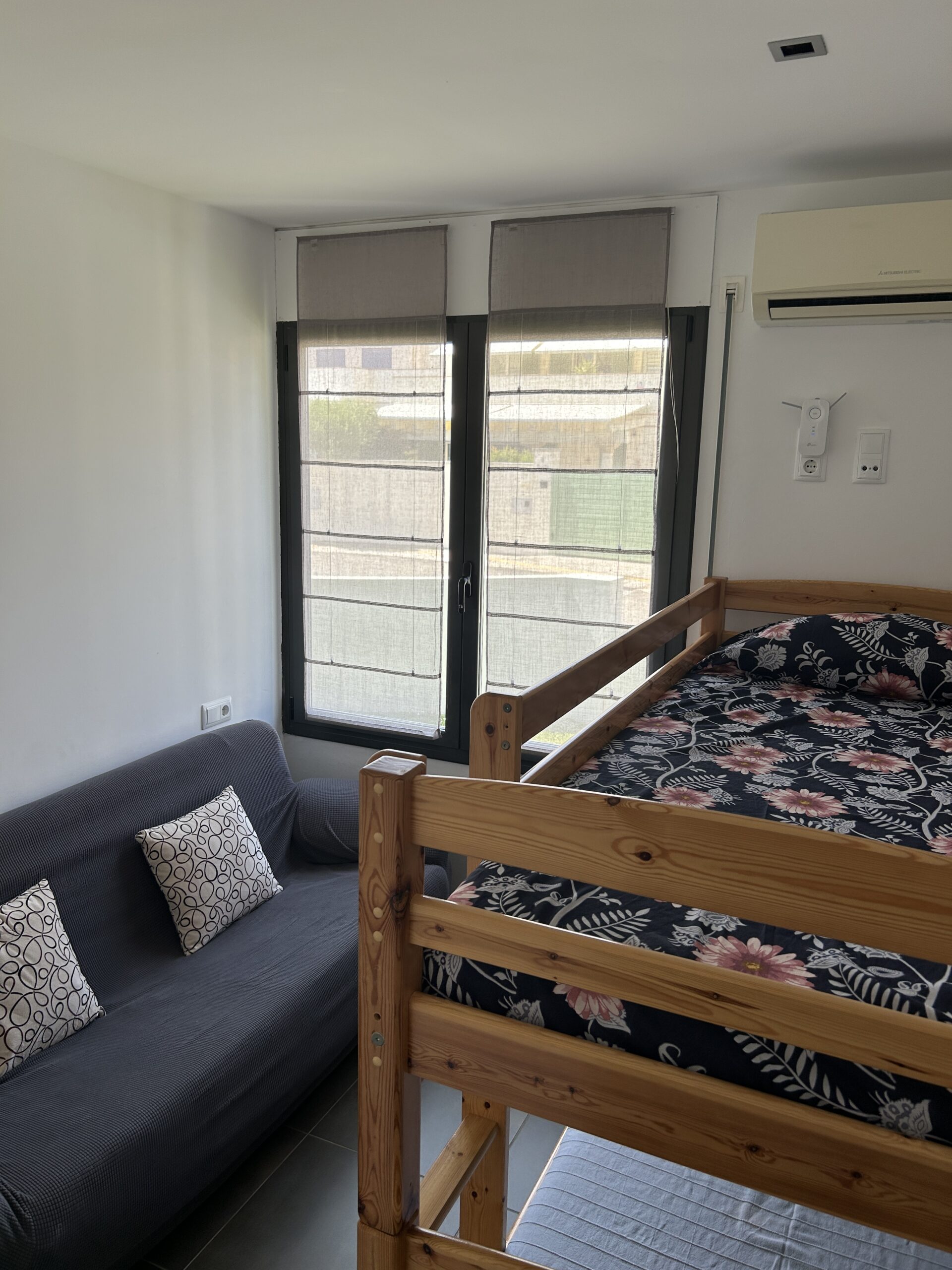 La planta baja de la casa cuenta con un amplio salón-comedor, una cocina independiente totalmente equipada (vitrocerámica, campana extractora, horno de convección, microondas, lavavajillas, frigorífico y congelador), así como un acogedor dormitorio con literas y un cuarto de baño contiguo con una refrescante ducha.
