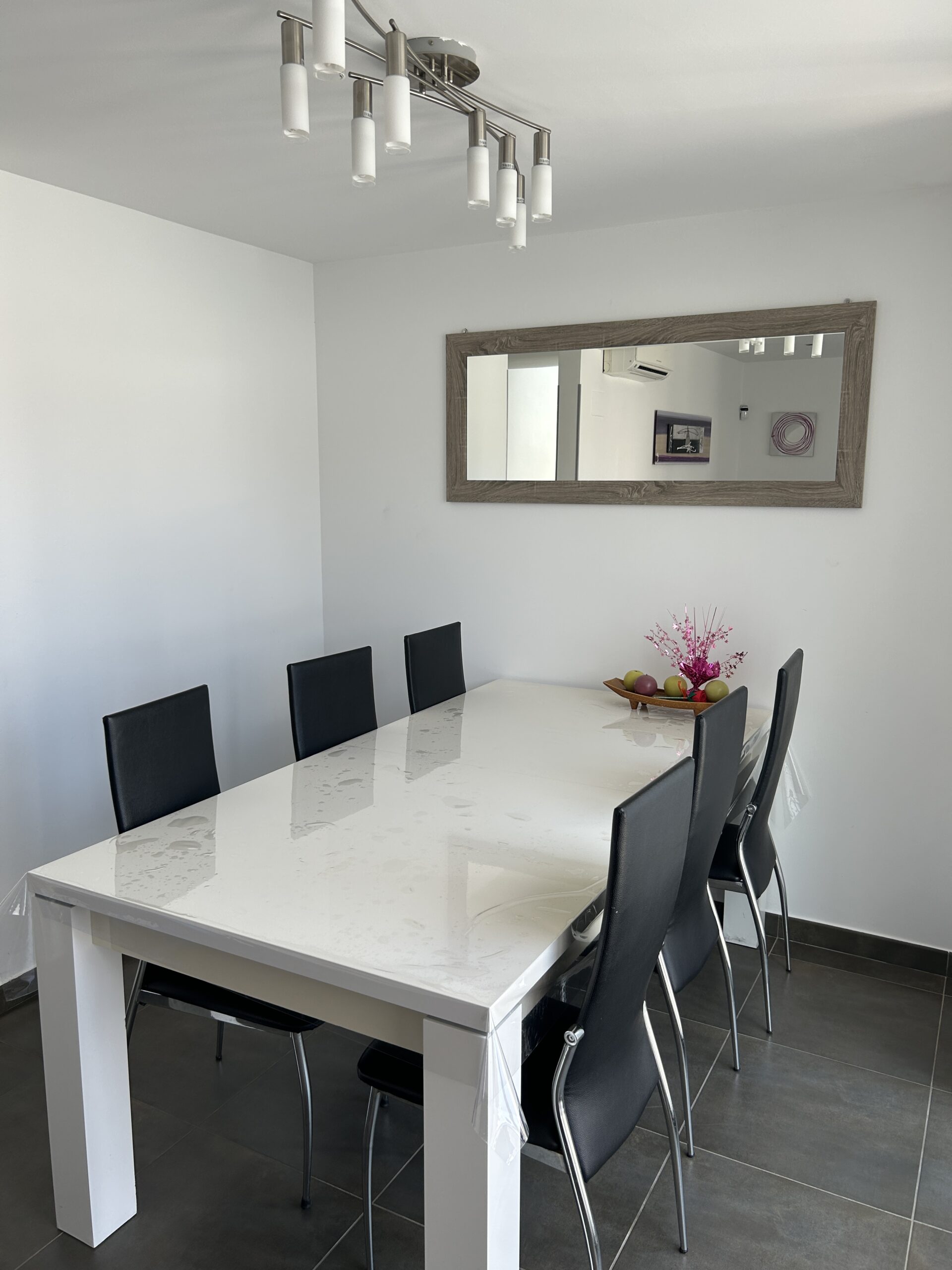 En la planta superior le esperan tres dormitorios dobles amueblados con gusto, uno de los cuales dispone de cuarto de baño propio con una atractiva bañera y balcón. También hay otro cuarto de baño con ducha. El aire acondicionado en todas las habitaciones garantiza una temperatura agradable y una tranquilidad absoluta.