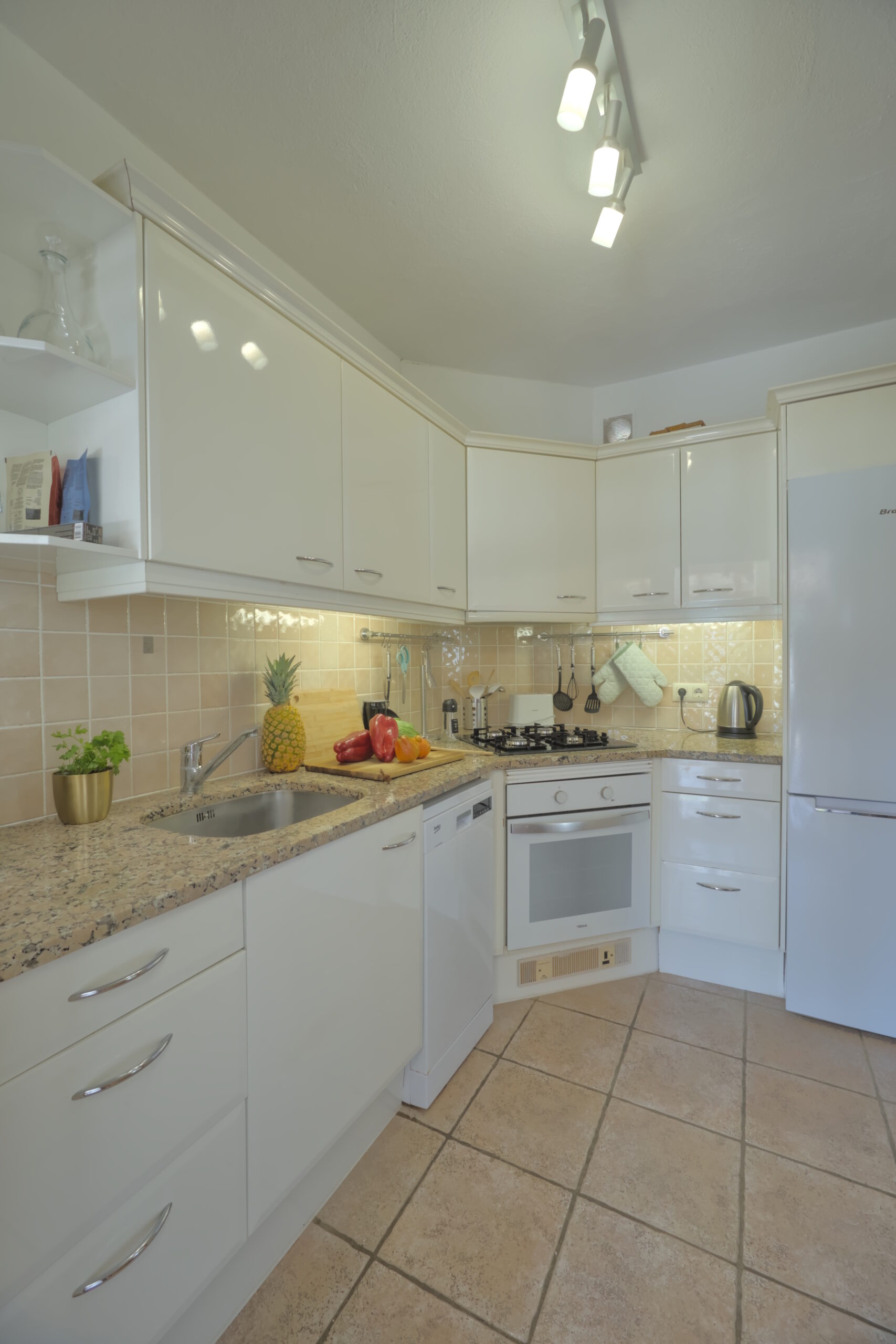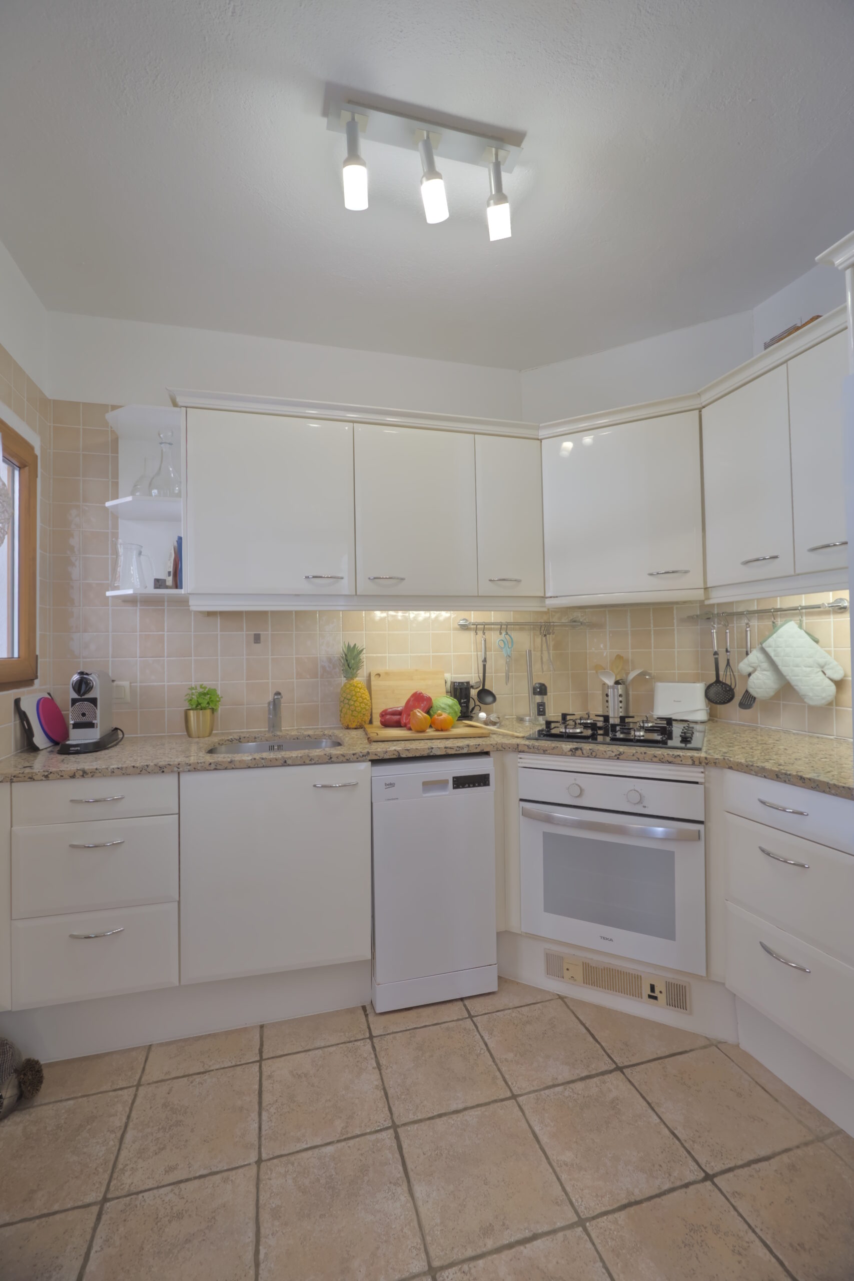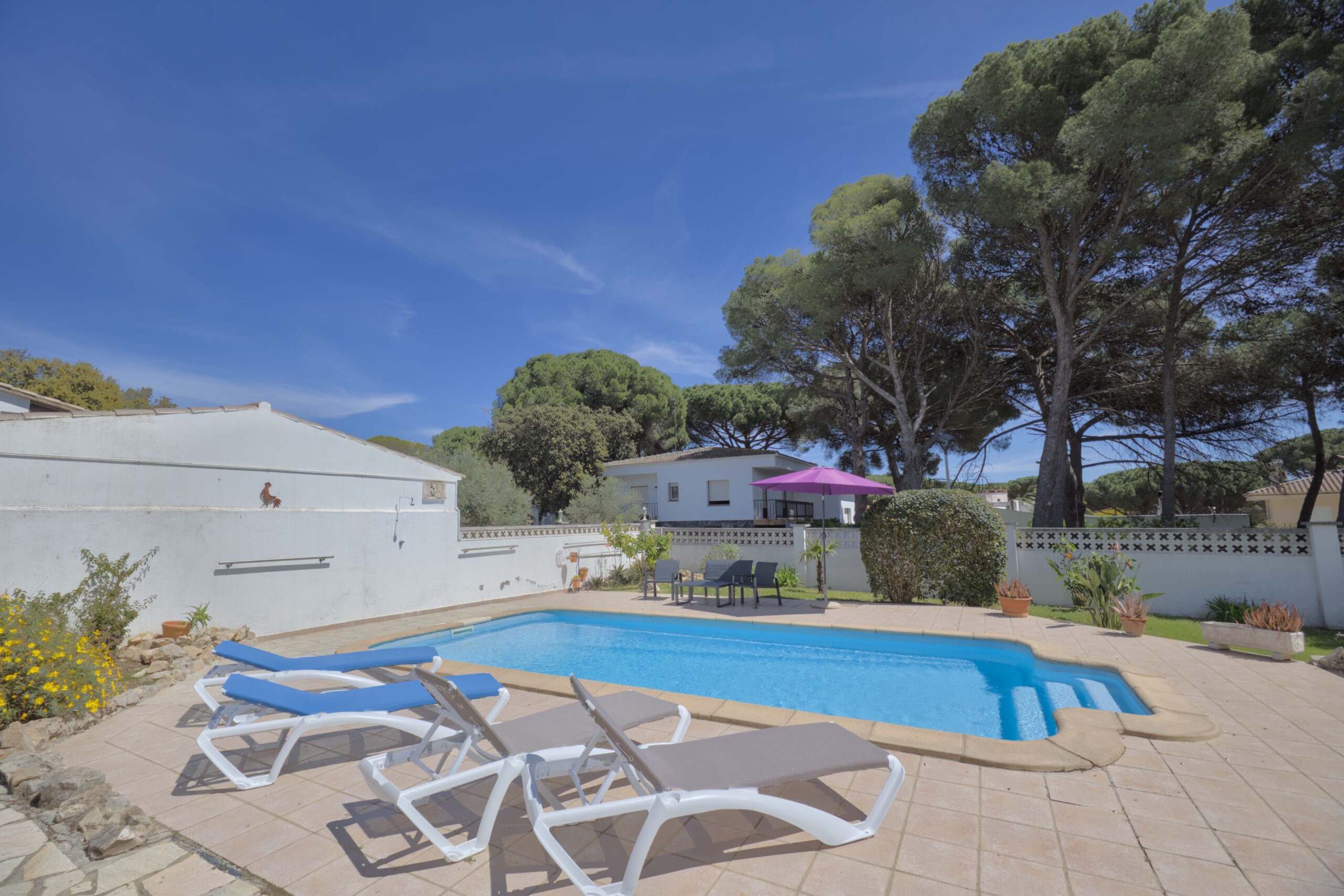 La espaciosa casa está ubicada en una tranquila zona residencial y solo unos 800 metros de la playa de Montgó. Los aparcamientos se encuentran directamente en la propiedad esquinera completamente cerrada. La casa tiene una piscina privada de 4,00m x 8,00m y un amplio jardín.