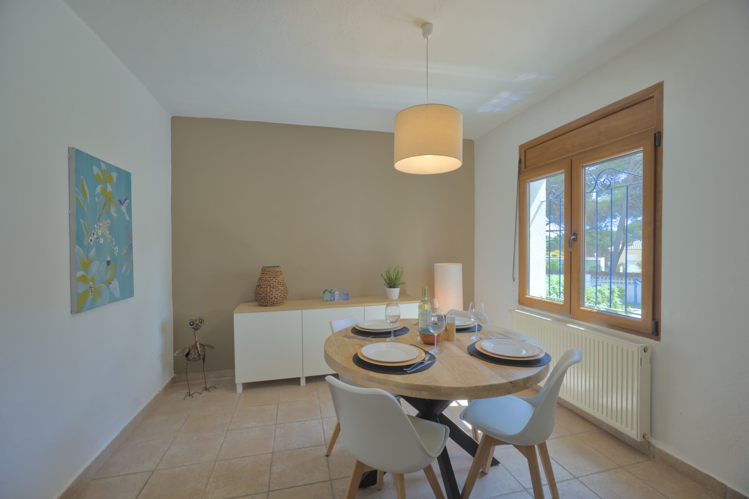 La casa tiene unos 156 m² sup. construida y está diseñada para vacaciones en familia hasta 4 personas.