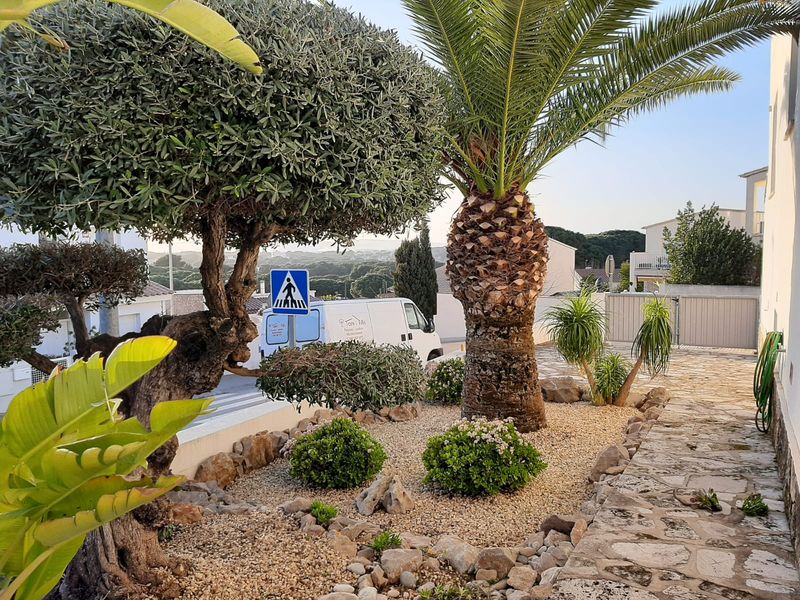 La propiedad está diseñada en estilo mediterráneo y ofrece varios posibilidades de disfrutar el sol. En la terraza hay una barbacoa de ladrillo y una piscina soleada de 8,00m x 4,00m. Desde la azotea se puede disfrutar la vista hasta los Pirineos.