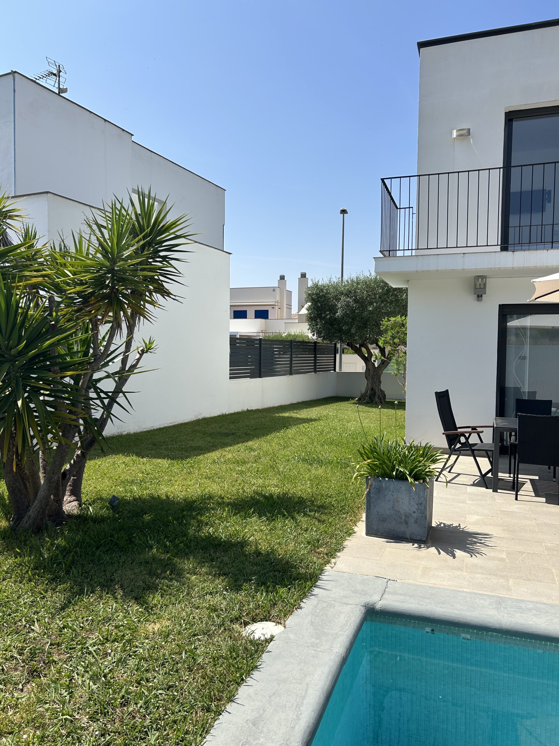 La piscine mesure 3 m x 6 m et dispose de marches. La propriété est entièrement clôturée et dispose d’une place de parking.