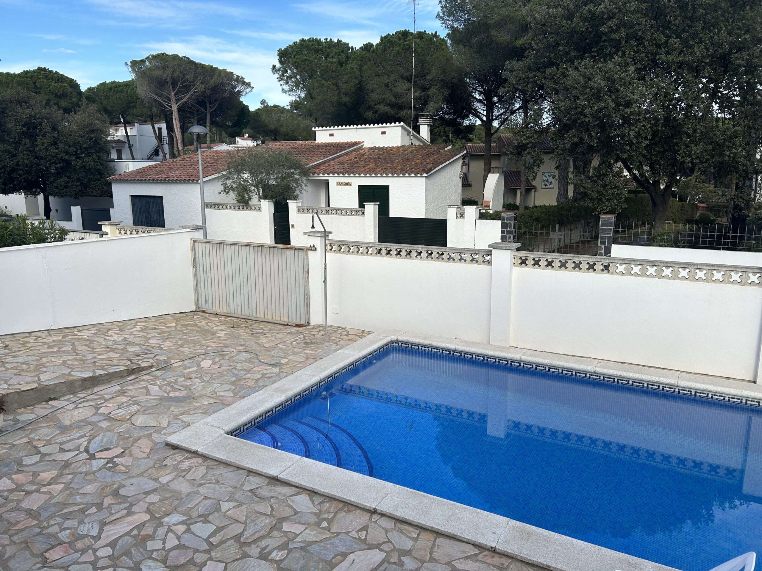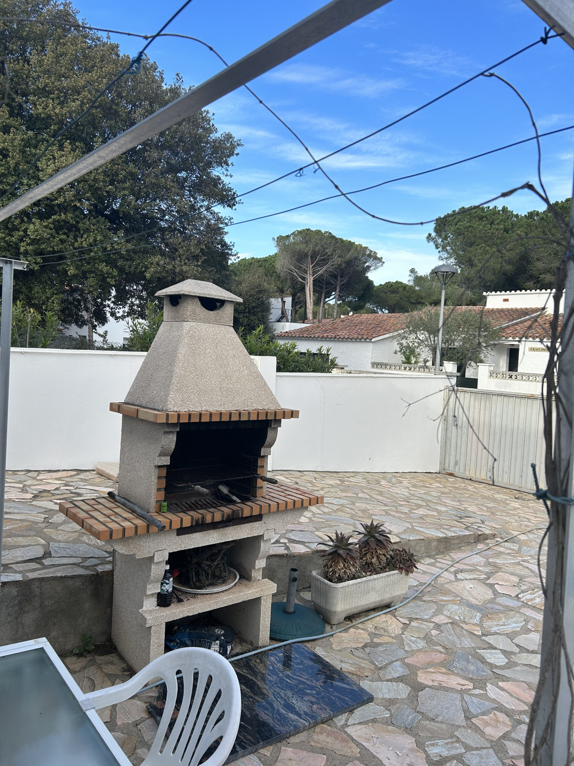 Le terrain est en grande partie pavé et dispose d’une piscine de 4m x 8m avec des marches. Le barbecue en briques est situé juste à côté de l’aire de repos près de la piscine, ce qui est parfait pour les barbecues en plein air.